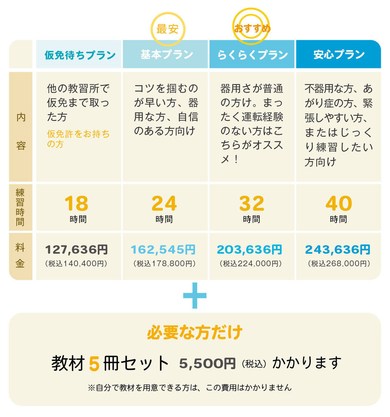 「早く取りたい」、「安く済ませたい」、「簡単に終わらせたい」と思う方も多いと思います。もちろん、私たちもできる限りご負担の少ない免許取得を目指しています。指導員は一流教習所で培った業界最高水準の教習技術を提供させていただきます。安いところで我慢しようという選び方は是非しないでいただけると嬉しいです。当社の一番の売りは安さではなく他のどこにもないハイレベルな講習内容とお客様のために尽くすサービス精神です。